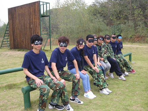 接下来的项目是“孤岛求生”,我饰演盲人,带上眼罩以后我无所适从,人生第一次在黑暗中完成任务。开始时大家都有些摸不着北,后来总算领会到这个项目的任务就是是把盲人、哑人成功的救到珍珠岛,只能由哑人完成救助,健全人只能起指挥的作用。整个项目过程中,盲人绝对服从,哑人合理安排救助路线,实施救助,健全人响亮的明确的指挥,伙伴们在40分钟内出色的完成任务。它让我体会到什么是组织、服从。