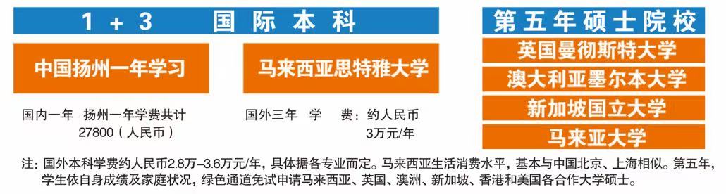 采用国内1年国外3年的学习模式,费用低,使学生在国内一流大学享受真正的国际化教育,花最少的费用,可获得国外大学学士学位;